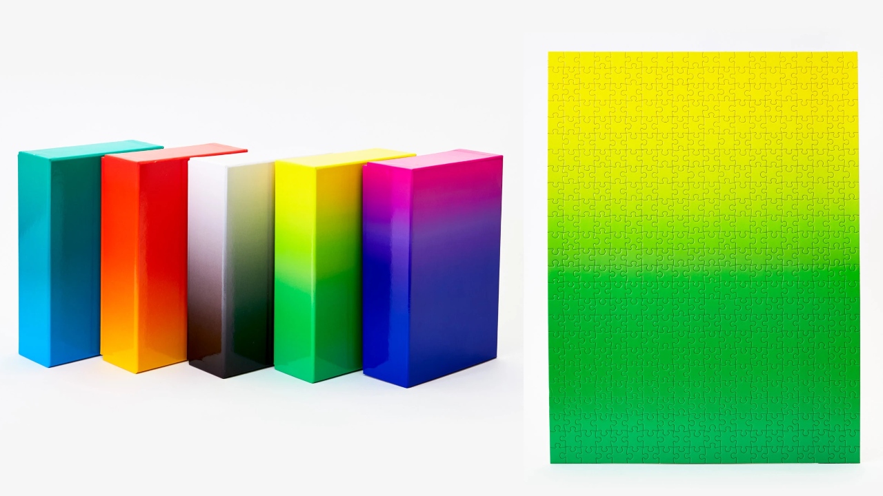At first glance, the Gradient Puzzle (RM111) looks simple. Consisting of 500 pieces, it’s a rectangle that fades from one colour at the top to another at the bottom. And therein lies its unique challenge: Once you begin working on a Gradient Puzzle, you quickly learn how hard it is to puzzle out a picture when there are no details other than colour to use as landmarks. Of course, that only amplifies the sense of accomplishment when you complete one. Even better: Once you finish your first, there are four other colour combos to complete.