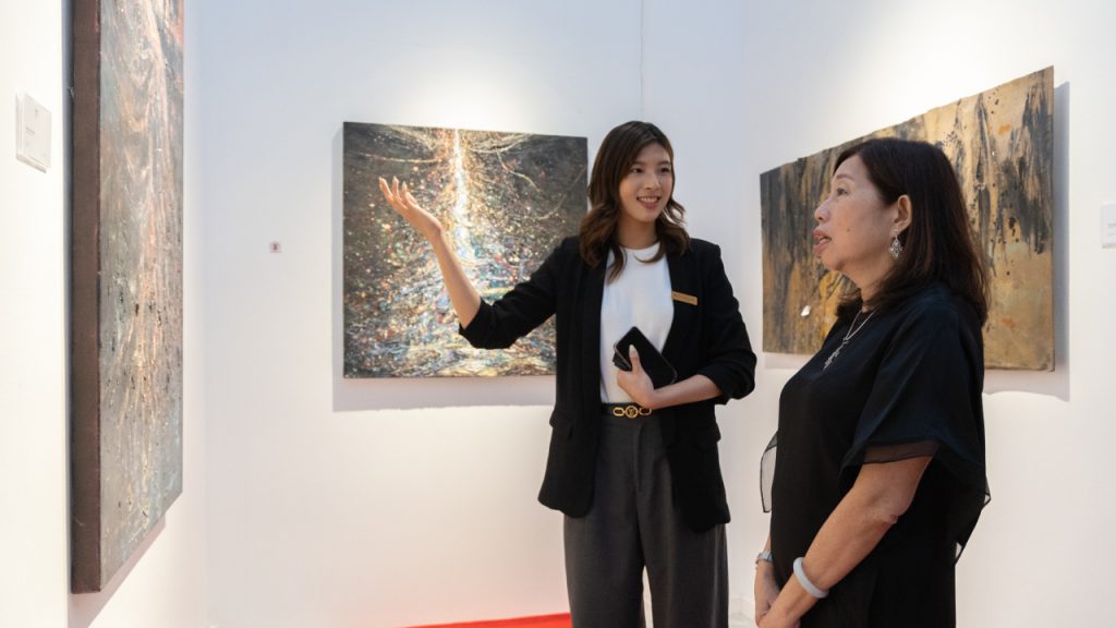 As the guests took their seats for dinner, the featured artist of the night was introduced. Michelle Yap, known for her bold abstract contemporary works, took the stage and shared her artistic journey that has taken her from London’s Central St. Martins College of Arts to commissioned paintings in the homes of Hollywood moguls and alongside Jeff Koons at the Shanghai International Art Fair.