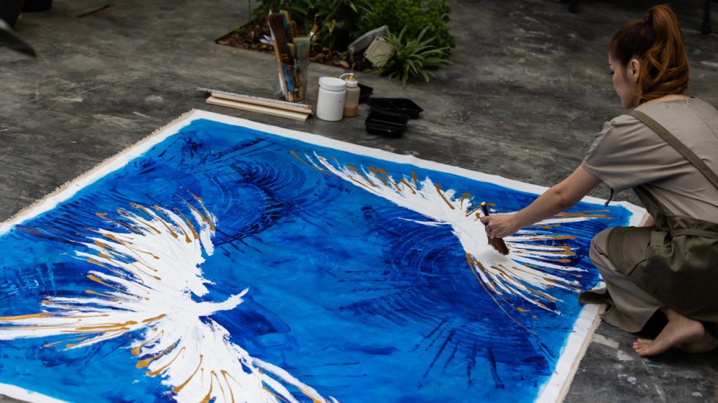 Now, when I paint, it’s always about the feeling that I have. Not doing it to please others or, in the words of my tutor, “trying to get an A”. When I work on large formats, it’s like a discharge of energy, and that feeling is amazing. Appreciating art isn’t just with our eyes, but also with our hearts.