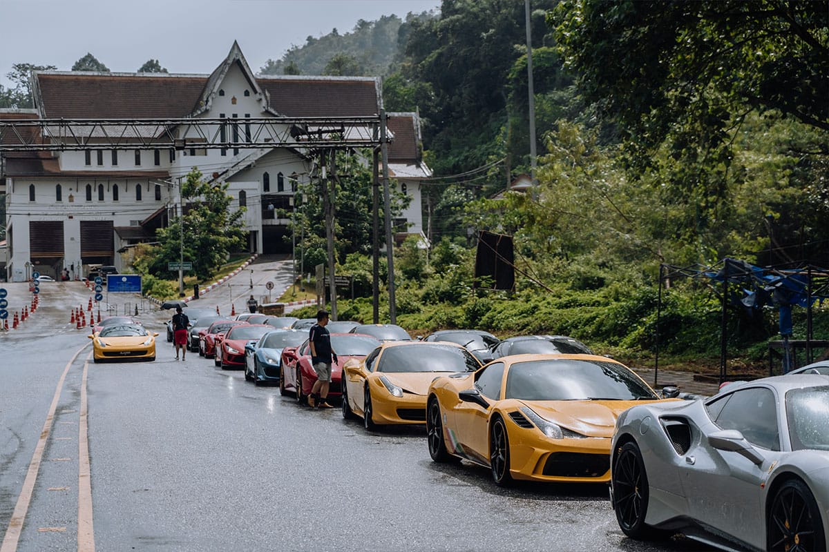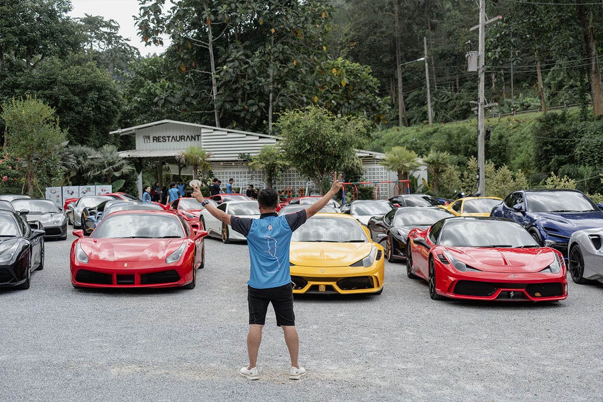 The first day began at the crack of dawn, as 23 Ferraris gathered at the north-bound Rawang rest stop to refuel and begin their charge towards Sauk. At Sauk, a local lunch was followed by some of the most excellent durians, which saw participant Louis Lai—a durian connoisseur—give his two thumbs up in approval.