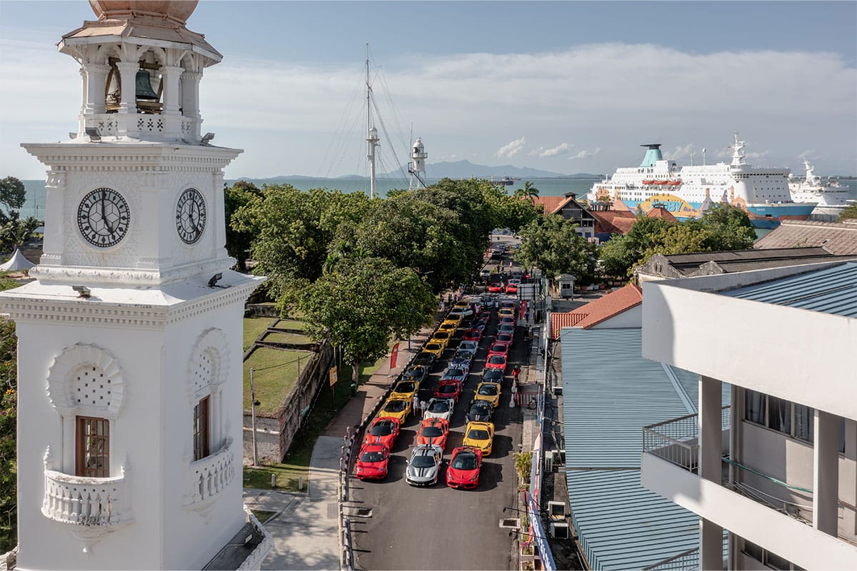 At the stroke of 1.30pm, the engines revved up and a total of 36 Ferraris—with 13 more joining from Kuala Lumpur and Penang that morning—motored down the highway and across the Penang Bridge into Penang Island towards Fort Cornwallis, the oldest standing structure on the island built by the British East India Company (circa 1810). Here, the Ferraristi enjoyed a plethora of delicious Penang street food and local delicacies, from chendol and char koay teow to assam laksa and chilled fresh coconuts. Celsius—the lifestyle energy drink that partners with team Scuderia Ferrari—was also on hand to quench the drivers’ thirst.
