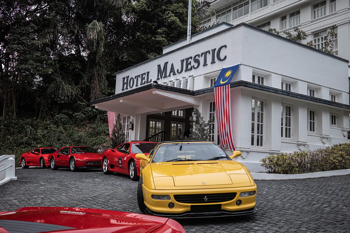 The parade of classic Ferraris began streaming in early at Bangsar Village II, comprising F328, F355, F550, 328 GTB, 308, 360s, and the iconic mid-engine 246 GTS Dino. From here, the convoy motored down Jalan Travers towards The Majestic Hotel Kuala Lumpur’s Colonial Wing—built in 1932 and achieving fame for being one of Kuala Lumpur’s great hotels in Malaya’s pre-independence boom years. The convoy then proceeded past the 1917-constructed Railway Administration Building, designed by Arthur Hubback, a government architect of the Federated Malay States. His work on the Railway Administration Building—now the offices of KTM Bhd—was rich with Indo-Saracenic style, with decorative references from Indo-Islamic and, especially, Mughal architecture.