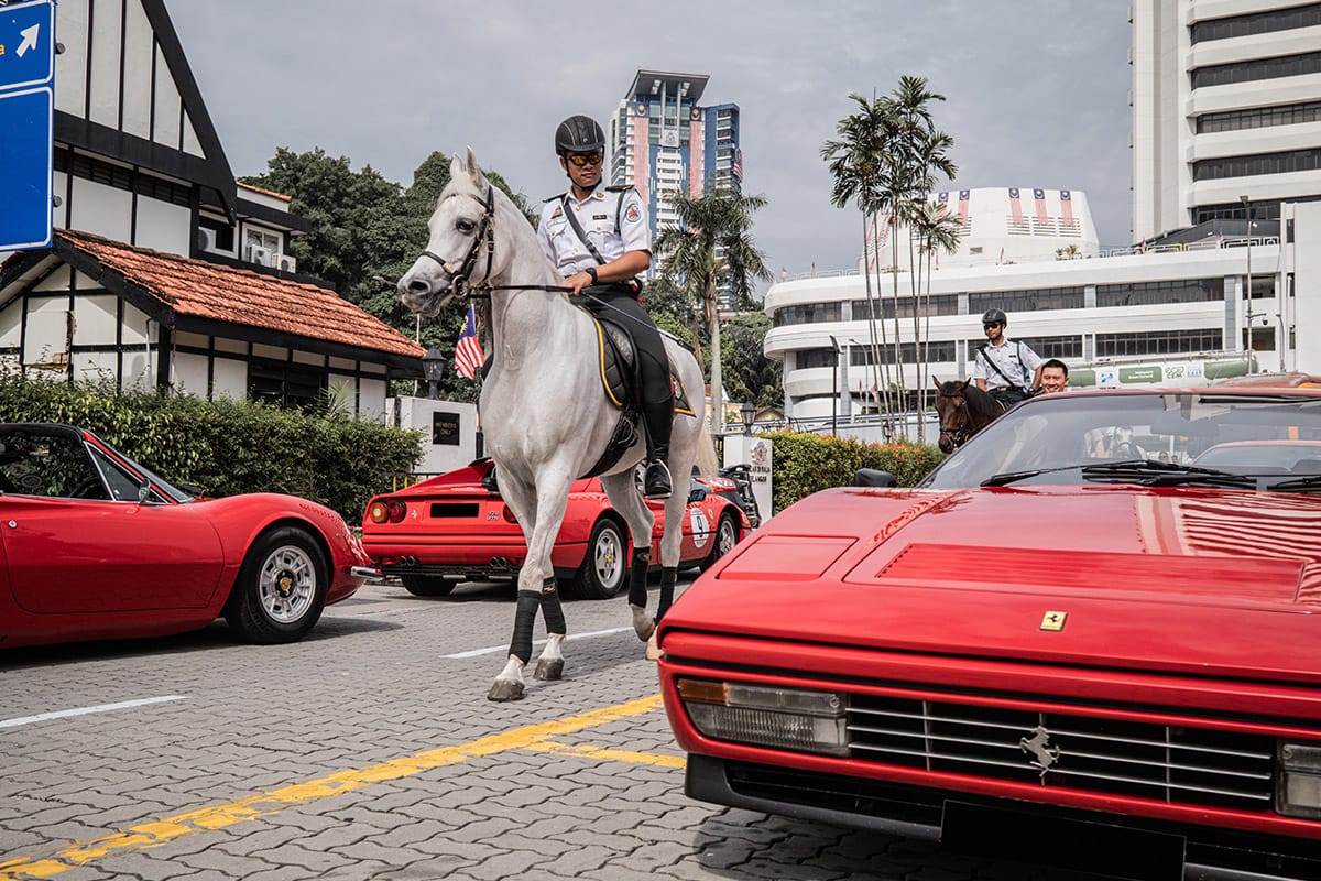 A quick pit stop at the Royal Selangor Club, located right next to Dataran Merdeka, brought the fleet of Cavallino Rampante up close to its equine inspiration in the form of mounted police who happened to be patrolling nearby. The Selangor Club, founded in 1884 by the colonial British for high-ranking members of society, was redesigned and expanded over the years, eventually being granted a royal charter by His Royal Highness DYM Sultan Selangor in 1984, to then have the royal inclusion in its name.
