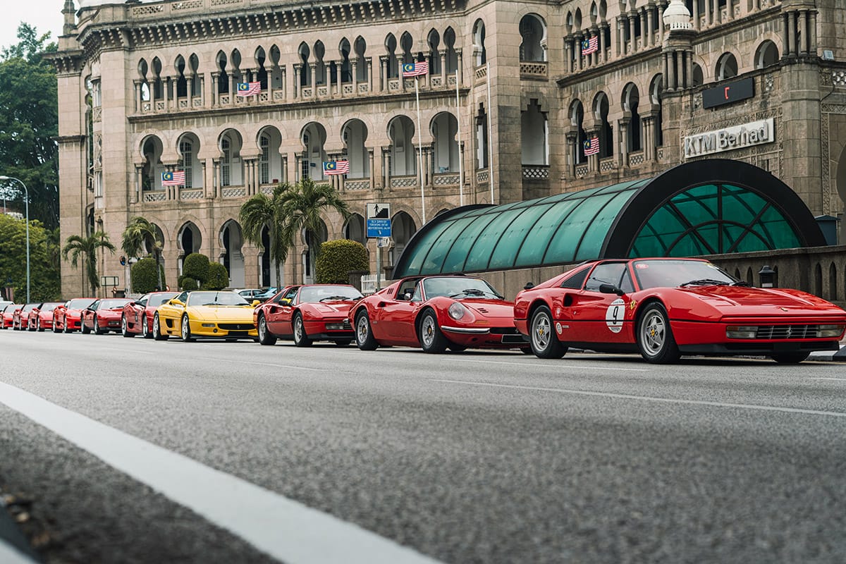 A fleet of classic Ferraris showcased Maranello’s past on Kuala Lumpur’s roads.