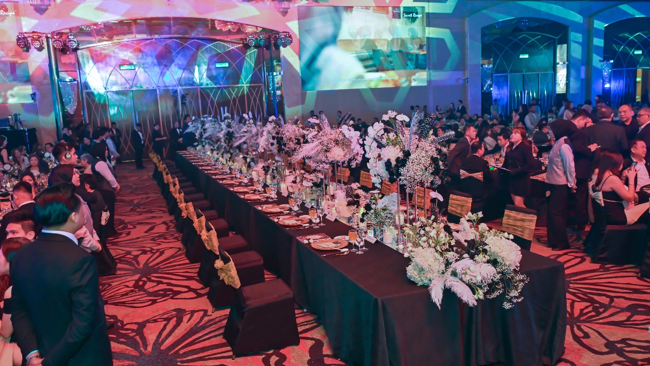 The black-tie dinner event, themed Ebony and Ivory, saw a turnout of 1,000 guests comprising MRCA members, associate members, corporate patrons, dignitaries of foreign missions and embassies as well as representatives of affiliated ministries such as Malaysia External Trade Development Corporation (MARTRADE). On the night, the guest of honour was Malaysia’s Digital Minister Gobind Singh Deo who, along with the other guests, were welcomed at the foyer by a Steinway Spirio O180 – a high-resolution player piano which flawlessly reproduces the playing style and music of masters.