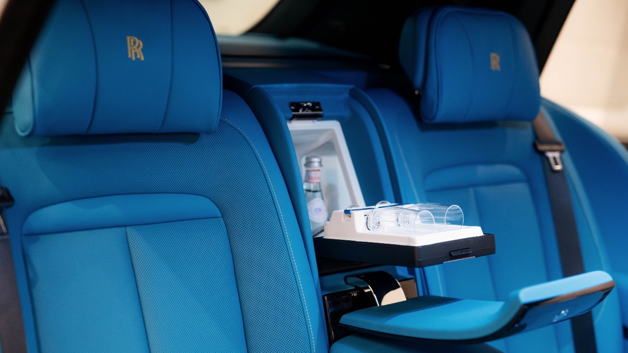 Across the ballroom, the two Black Badge Cullinan SUVs glowered with what could be described as an unapologetic presence. Signature accents of the Black Badge treatment abounded, including the high-gloss coachwork, chrome exhausts and expressive materials such as graphic black on the door handles, window surrounds and the Spirit of Ecstasy.