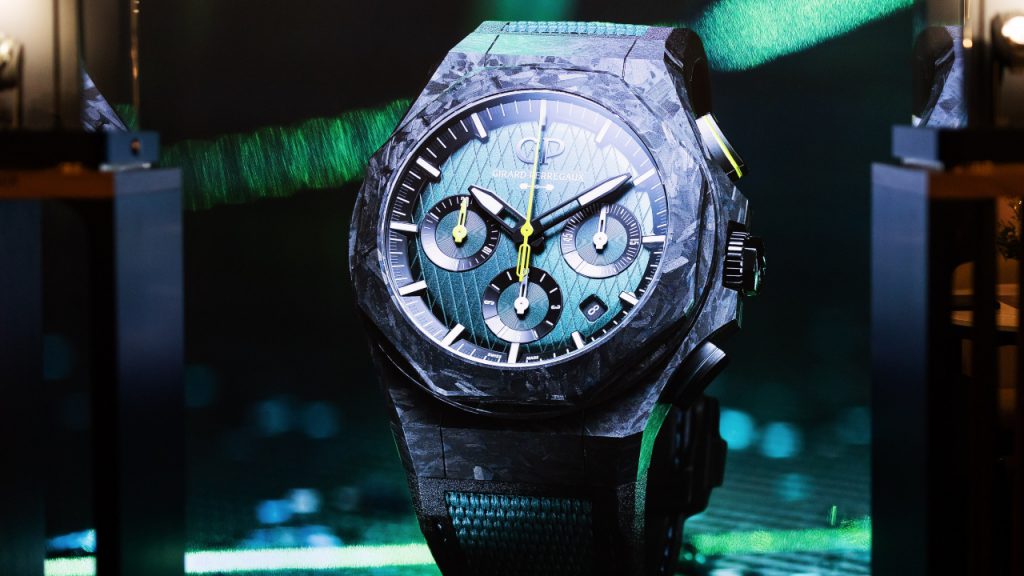 Attendees could also have a look at the Aston Martin on the patio, the Vantage Coupe V8, which is also one of the current F1 safety cars. With the brand re-entering the roster of F1 constructors in 2021, it’s more relevant to motorsports fans than ever. Also in attendance was the watchmaker Girard-Perregaux, who began a partnership with Aston Martin that same year, and has since released several highly sought-after limited editions; the latest, the Laureato Absolute Chronograph Aston Martin F1 Edition, sports a cross-hatched racing green dial and a case of titanium and carbon – carbon taken from two F1 cars that raced in the last season.