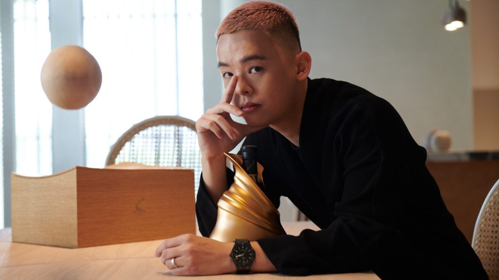 For Ooi, the Kim Jones-designed limited-edition aluminium gold Hennessy X.O holder may be appreciated like a an elegant silk dress, holding mysteries within the ensconced bottle of cognac. The appreciation of a glass of Hennessy X.O entails drinking with company, he shares. “I’m exceptionally uncomfortable being by myself, plus good things should be shared!” Here, Ooi reflects on the gamut of his formative experiences, his preferences and how he discerns his idea of happiness.