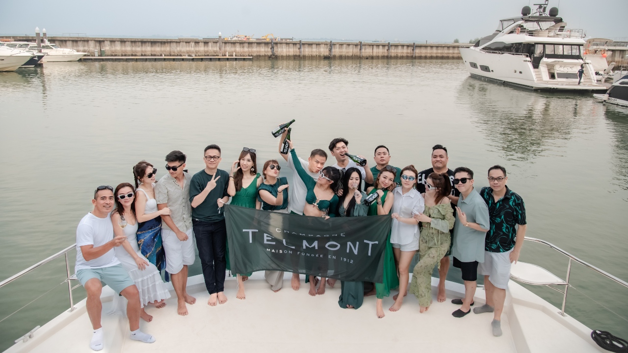 The next day, not far from Haku, guests of Robb Report Malaysia’s Island Escape gathered at Straits Quay Marina to board the Lady Catryna Leopard catamaran for an evening cruise with Champagne Telmont. Guests were garbed in various hues of green to reflect the dress code of ‘193,000 shades of green’—a reflection of Champagne Telmont and its owner Remy Cointreau’s promotion of sustainable packaging using ‘transition glass’ for its bottles, where colours ranged from green to cinnamon.