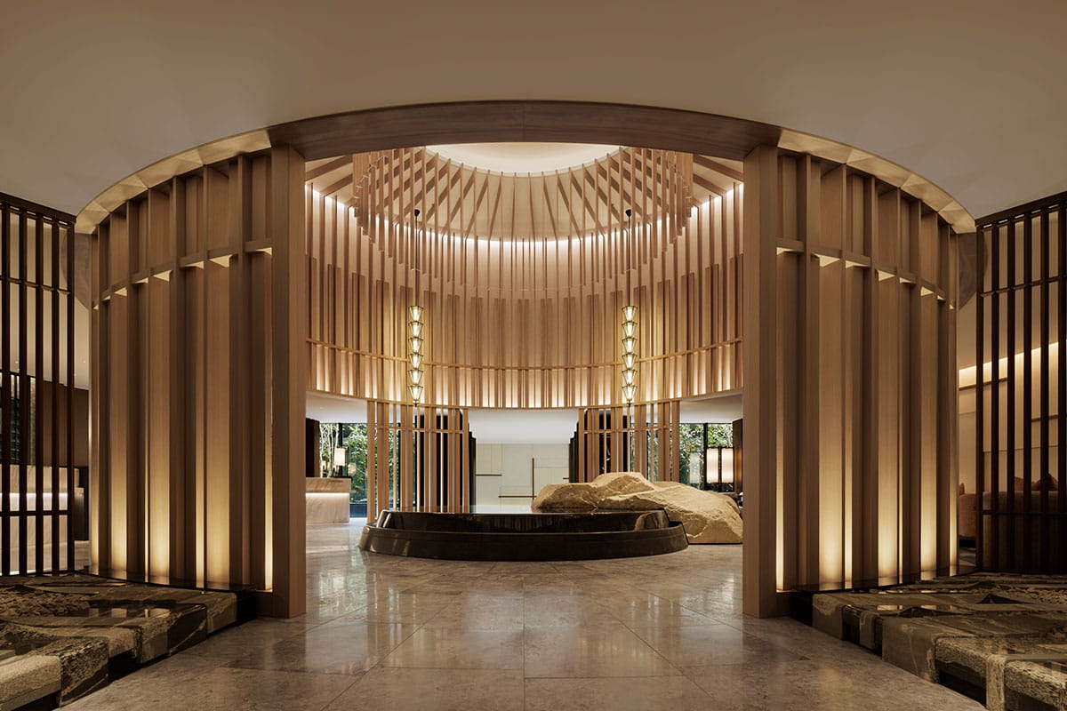Yet, despite his laundry list of awards and acclaim from all over the world, Fu is an unassuming fellow. I recently met him during the launch festivities of the Waldorf Astoria Osaka, which he designed quite majestically, and he greeted me warmly in the hotel’s picture-perfect Peacock Alley. I’ve met people with a tenth of his portfolio and plaudits, but with 10 times the ego and entourage, yet Fu (without a single minder) seemed almost embarrassed that someone wanted to pick his brain on hospitality, creativity, and what it took—and takes—to ascend to the upper echelons of luxury design.