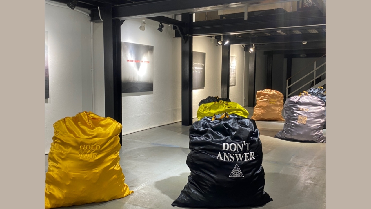 Lim’s exhibition reveals a profound reality in which humanity is still entangled in primal instincts, pursuing momentary aspirations of wealth and dominance, despite the progress in technology. The symbolism intricately woven into each artwork tactfully touches on socio-political topics, particularly the prevalent sway of materialism and its impact on our moral compass. A repeating theme in the form of a money sack serves as a commentary on societal values—the subtle inclusion in his pieces suggests an intrinsic imbalance between abundance and necessity, urging viewers to reflect on the constant need for resources in a world marked by growing disparities.