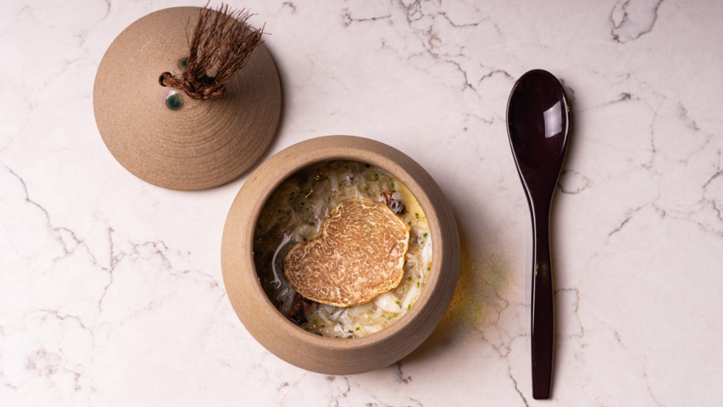 So what can be disclosed about Hide? In terms of size, it’s about as intimate as it gets, seating just 13 people along its U-shaped chef’s table, from which diners can watch Ng and his team carefully plating up in the open kitchen. The dining room is wood-lined, tactfully spotlit, and undeniably elegant, with copper heating lamps, a New York-style subway-tiled kitchen, and Ng’s knife collection proudly displayed at the back. To say that this is already one of Kuala Lumpur’s most sophisticated restaurants would not be an exaggeration – and we haven’t even discussed the food yet.