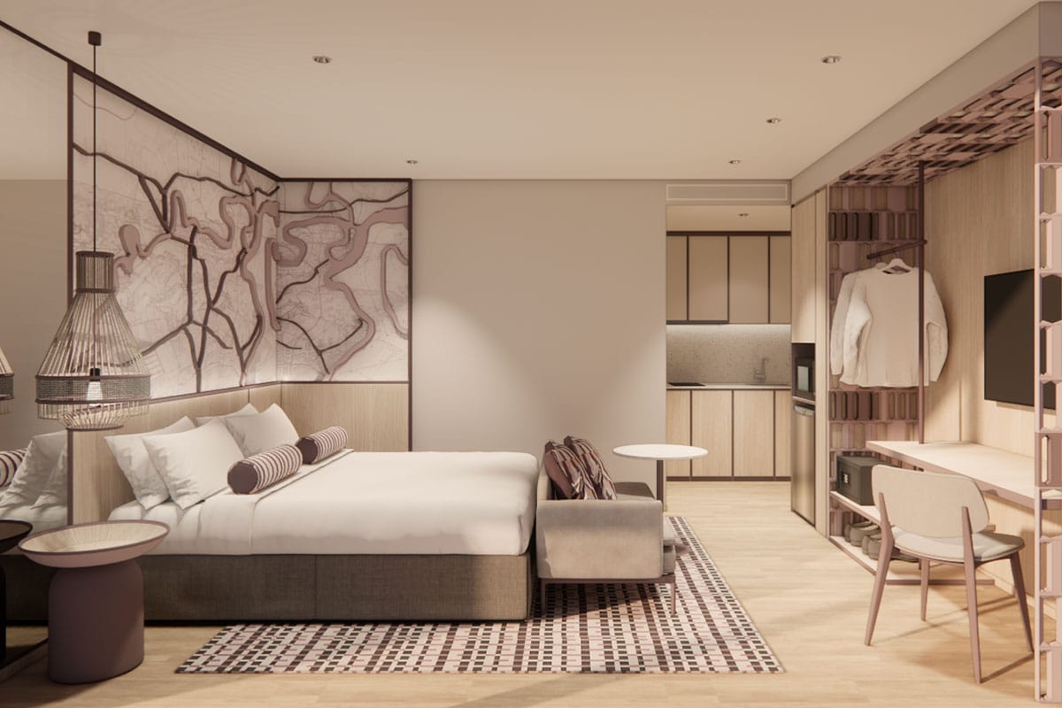 The project’s design was the result of Sarawak’s first-ever nationwide architectural competition in 2021, which attracted 112 entries worldwide. “Because it was based on a competition-winning scheme, we had to adapt Citadines’ operational needs and requirements, which were complex and super challenging,” Ong reveals. The experience, he reflects, pushed his team to be more creative, innovative, and efficient. “The constraints we faced actually helped us improve our creativity and design efficiency. We learned to make the best use of space without compromising quality, and that’s the biggest takeaway.”