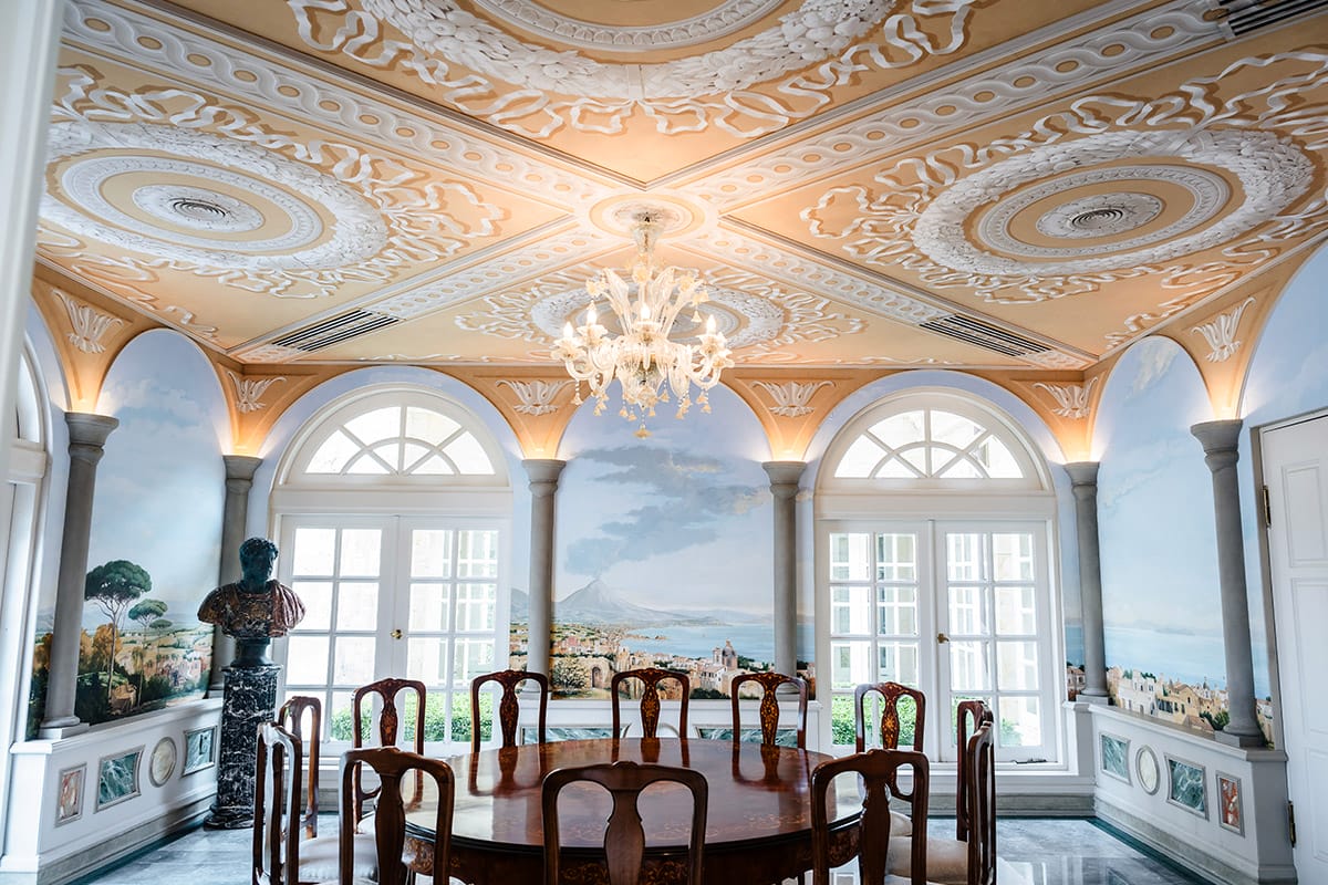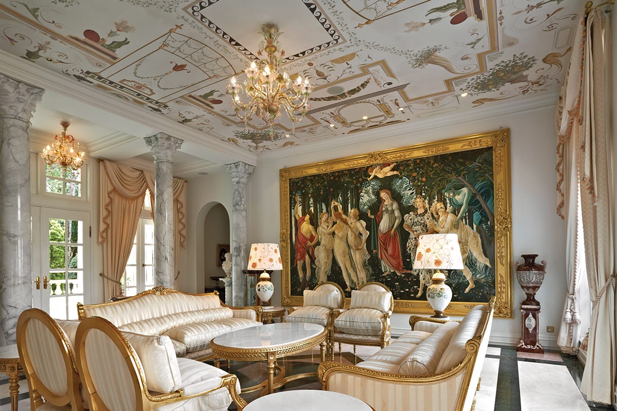 As striking as its exterior may be, the true enchantment of the manor reveals itself within, where the interiors are even more breathtaking. Tan Sri Konishi engaged Stefano Ficalbi, a professional Florentine artist—who was also part of the team that restored Botticelli’s masterpiece in 1982—to create a replica of Primavera, close in scale to the original. This was mounted in an antique gold leaf Tuscan frame, and currently acts as the crowning jewel of the main lounge, called Sala Primavera, or the Spring Room.