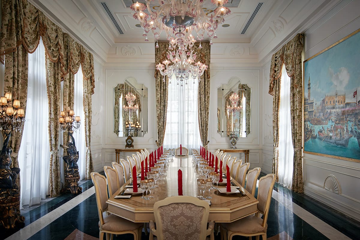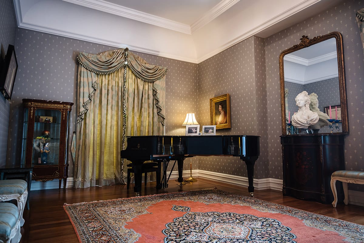 Another magnificent space is the formal banquet room, Sala Venezia, which transforms into a music hall for private concerts and recitals, and where Tan Sri Konishi often hosts the island’s elite. On one such occasion, guests had the privilege of hearing Russian pianist Sergei Glavatskih perform Beethoven’s Sonata Op. 13, Pathétique. For the performance, a Steinway & Sons B-211 grand piano was brought out. “As Sergei is familiar with the acoustics of my home, he travelled to the company’s Hamburg factory to personally play and select from 10 instruments, and he believes this may well be the finest piano in Malaysia,” Tan Sri Konishi says. Within Sala Venezia also hangs an enormous traditional coloured Murano glass chandelier, a signature of Venice, along with a splendid replica of a Canaletto painting depicting scenes of the city’s Grand Canal in the 18th century.