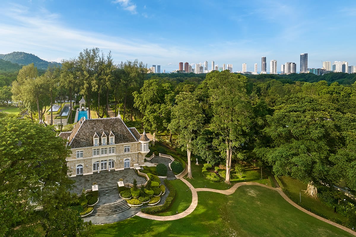 On the island of Penang, Jesselton reigns as its most prestigious neighbourhood and, within it, lies one mansion that stands apart thanks to its unrivalled architectural grandeur. Since it was erected in 1995, Villa Primavera has attracted the gaze with its lush, landscaped grounds and the dreamy French chateau-styled edifice among the majestic trees. Although it is a private estate and thus closed to the public, its wrought iron gates recently swung forth to admit Robb Report Malaysia for an exclusive tour and interview with its owners, Tan Sri (Dr) Fumihiko Konishi, founder and executive chairman of the Texchem Group, and his son Dr Yuma Konishi.