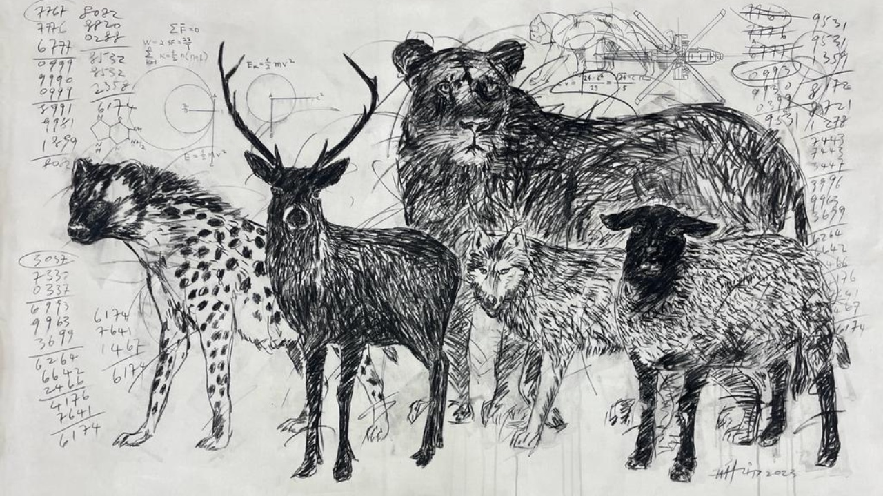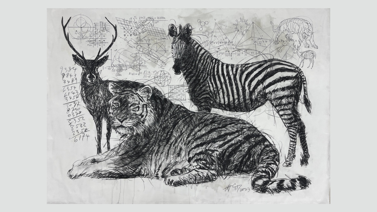 Now, Lim has returned with his second solo exhibition at Wei-Ling Gallery in Malaysia after a decade, titled The Gaze Of Sleepwalkers (now running until 30 March 2024). In this collection of 13 paintings and installation pieces, Lim illustrates a connection between the human condition and the surrounding ecosystem. Within their secluded habitats, wild animals become observers, directing a reflective gaze toward humanity’s present state. The narrative disentangles the contrast between the observer and the observed, revealing our shared position as unwitting ‘sleepwalking’ participants in a world marked by turmoil and unrest. “One of the lengthiest expeditions in my life entails the day-to-day and year-by-year trek between my home and the studio,” Lim says. “It resembles a recurring journey, akin to a carefree sleepwalker, navigating a precarious path.”