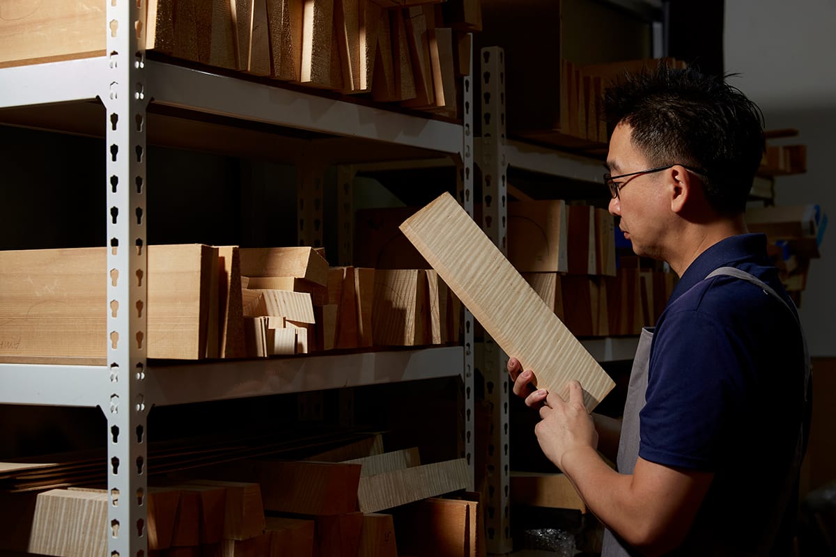 1. Tan handpicks high-quality spruce for the top plate and maple for the back, ribs, and neck, sourcing much of it from Europe. Rather than choosing wood for appearance alone, he prioritises acoustic quality: “Good sound comes from wood that resonates easily and projects well—it doesn’t always come from the most beautiful-looking pieces.” The woods are then aged over time to enhance resonance and structural stability.