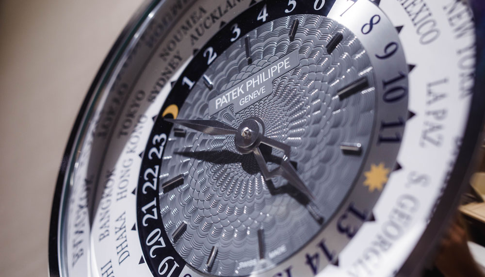 Throughout the afternoon, fine champagne mingled with insightful conversations on timepieces, as well as a discourse on the role of women in Patek Philippe’s past and present. The undoubted star of the day, however, was the Ref 7130G – a Ladies World Time in a beautiful peacock blue-grey hand-guilloche dial, matching alligator strap, 36mm white gold case and diamond-set bezel.