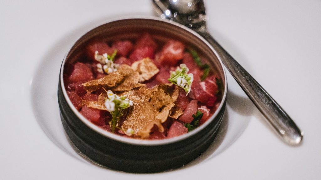 Back at Sabayon, a canvas of maguro (bluefin tuna) and shaved white truffle as well as citrus sauce provided the platform for the 2018 Corton-Charlemagne to shine, with its perfumed aromatics leading to stone fruit and a mineral twang. A charcoal-grilled main lobster offered essences of sea and shell to go with the 2011 vintage, the extra years allowing it to attain greater complexity of lemons, apples and oranges on a mineral – but not flinty – finish.