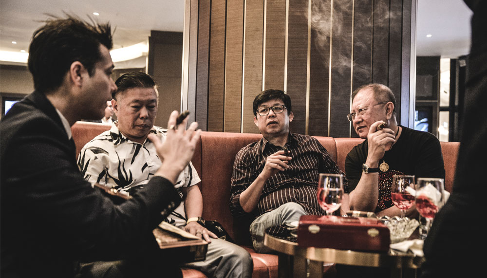 The delicious, Umami-enriched whisky, is distilled precisely 2.81 times for a bold and intense experience. Three varieties were made available for sampling – the Wee Witchie 12-Year-Old, the Distiller’s Dram 16-year-old and the crowning glory in Cowie’s Blue Seal 20-year-old whisky. Perfectly complementing after-dinner cigars with its long and complex finish, the audience was then regaled by a representative of Audemars Piguet. Speaking briefly about the intricacy and flawless craftsmanship of a slew of new watches, guests were invited to try them on and review each up close.