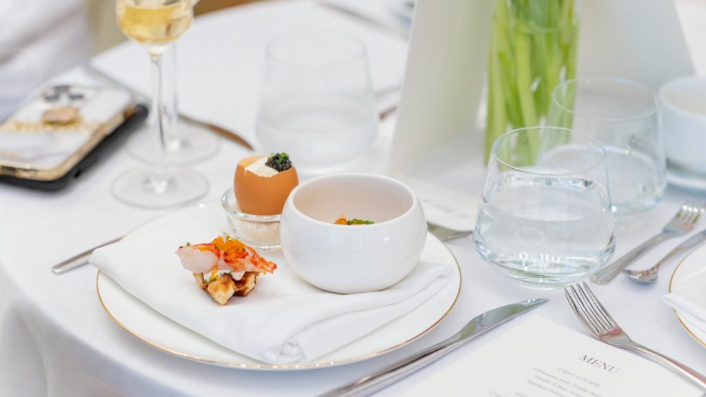 Breakfast would soon ensue, with croissants and truffle butter, brie toasties and smoked salmon bagels, followed by cold capellini uni, scrambled eggs topped with caviar, and a croiffle with lobster and chives cream. To end was a tart composed of ispahan, raspberry and lychee, as well as tiramisu in a chocolate cup.