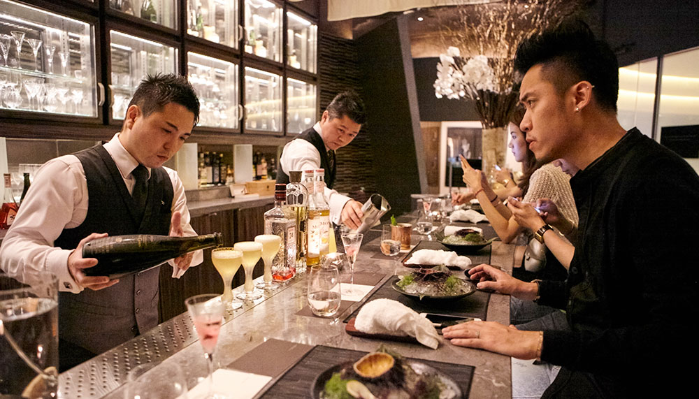 For dinner on the first day, the group was treated to Puck’s formidable steakhouse Cut, recently honoured with a Michelin star. The melange of flavours began with wasabi-kosho ponzu on a Hokkaido scallop carpaccio and a crisp 2015 Domain Seguinot-Bordet Chablis. The signature Bone Marrow Flan followed before the grand entrance of USDA Prime New York Sirloin – made all the more delicious with a pairing of 2008 Chateau La Tour de By Medoc. Dessert was a sumptous Kaya Baked Alaska served with Pandan ice cream and coconut sorbet, as well as a 2012 Hungarian Disznoko Late Harvest Tokaji.
