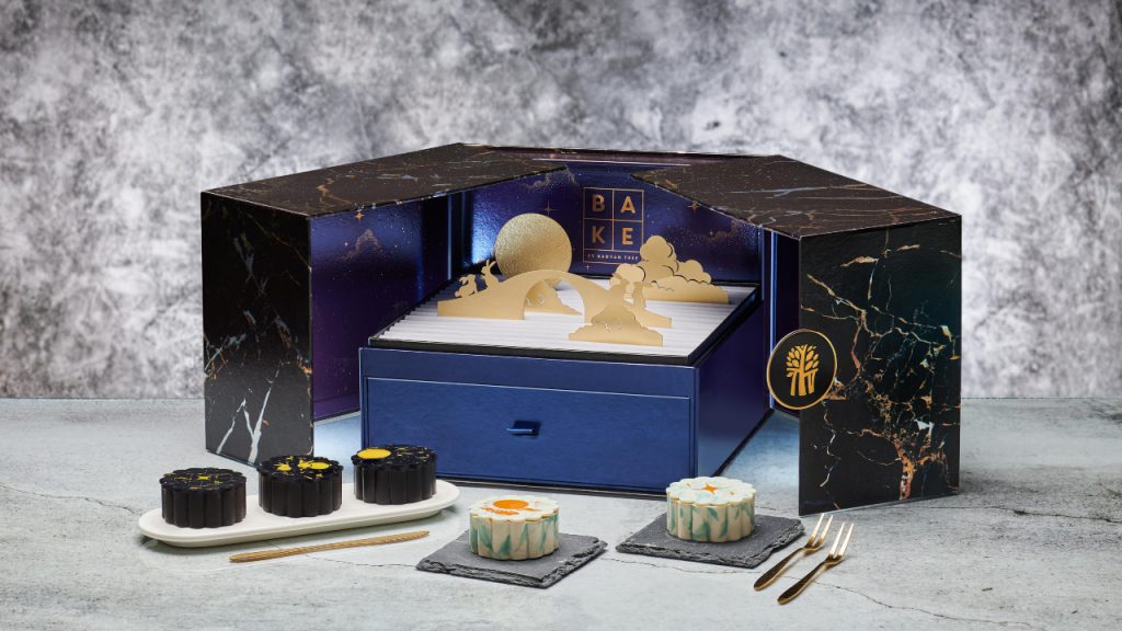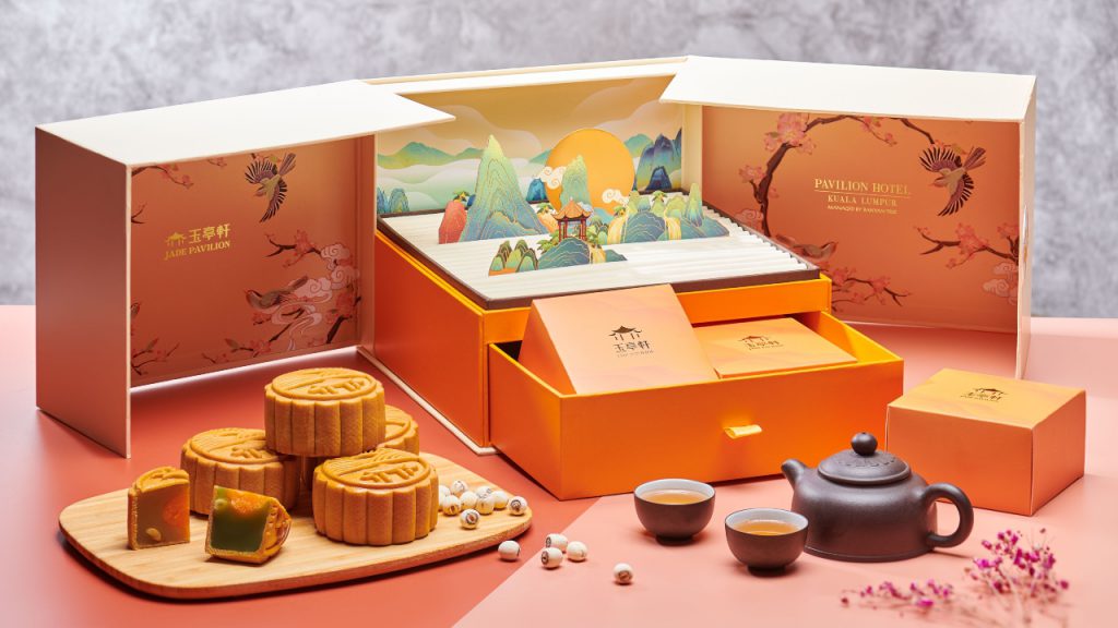 Pavilion Hotel’s Jade Pavilion presents an opulent selection of authentic mooncakes with their latest Imperial Garden Treasure box. Inspired by the Imperial garden retreats, the box opens up to reveal a bright moon overlooking the colourful hillside and gardens, sitting on top of the drawer that holds the mooncakes. Among the classic traditional flavours on offer are their unique sweet corn lotus paste and yam lotus paste that go perfectly with a hot cup of tea. Priced at RM208 per box with early-bird discounts on offer.