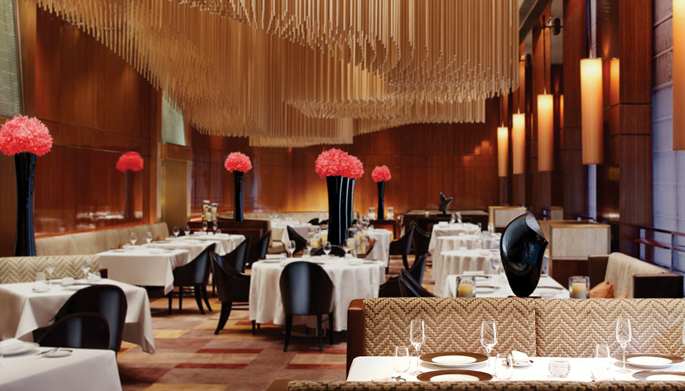 As the old saying goes, a server’s style, even in its subtlest, is a telltale sign of how a restaurant regards its food. Inside the 60-seat dining room of modern French restaurant Amber, located on the seventh floor of The Landmark Mandarin Oriental in Hong Kong, this point is proven with immaculate hostesses, servers, sommeliers and the maitre d’hotel. Their crisp movements blend into the ambience created by architect Adam Tihany, who suspended 4,320 golden rods from the ceiling.