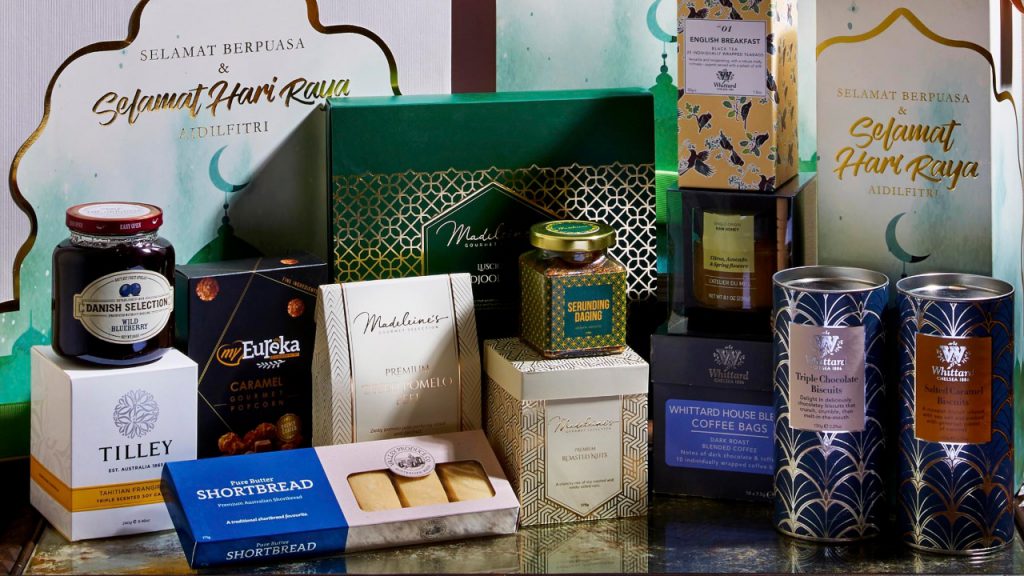 The pièce de résistance of the Hari Raya hampers is The Raya Celebration Box, priced at RM750. In it, you will find 20 different items which include; single-origin pure Lebanese honey from L’atelier Du Miel, Whittard biscuits and English Breakfast teas, a Tilley Tahitian frangipani-scented soy candle and accompanying bath set. All of the contents nestle within a durable shipping box to stay cool in transit, while Bakhache Hampers also provides complimentary greeting cards that carry personalised messages, as well as ‘duit raya’ packets.