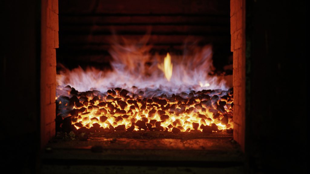 Opposite the steep tanks is the kiln, which is a tower-like attachment on the side of the malting house with a tell-tale pagoda-style roof that doubles as a chimney. This style of roof can be found dotted all over Speyside distilleries, but the Balvenie’s is exceptional because the smoke drifting out from it is a sign of its continuing operation. The barley is moved by elevator from the malting floor to the upper floor of the kiln, where it is laid out on a fine iron grate. This grate allows hot air and smoke to drift in from the furnaces below, drying out the barley, stopping the germination process and readying it for mashing and then fermentation. The furnaces below usually burn coal, but the Balvenie also uses peat – the heathery, mossy, sweet type of Speyside peat – most notably in its Week of Peat special expressions, but it uses a mild peat as a matter of course. The result is usually undetectable in the final expression, but it forms part of the distillery’s overall flavour profile.