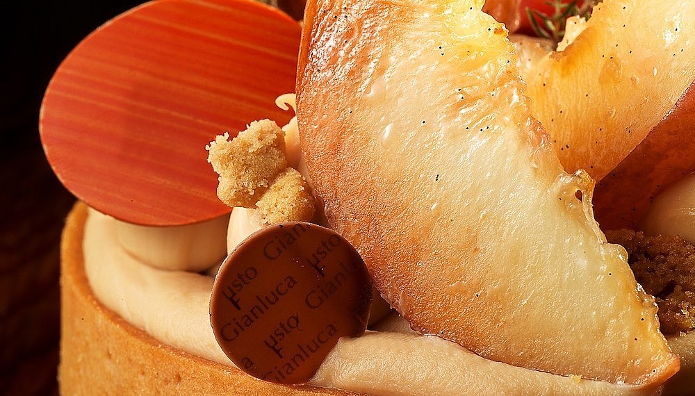 A delicate Giulia pastry explores the buttery, toasty notes of Valrhona’s 32 per cent cacao Blond Dulcey chocolate, combining it with an equally creamy apricot mayo on an elegant buckwheat sable. Moreish Couer de Guanaja crackers wait to be smeared with Opalys Vanilla or Caramelia creams and Guanaja spread, while even the fingers sandwiches come infused with Valrhona, like a chocolate croissant with asparagus and smoked salmon. If you can’t get enough of Fusto’s work, do stop by The Mandarin Cake Shop and take one of his signature pastries home with you: we recommend the Orelys pecan financier with raspberry compote and liquorice mousse.