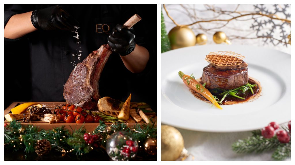 At this vibrant city hotel, with its chic Sky51 rooftop bar, the Yuletide spirit is presented through festive offers and packages at all of its F&B outlets. Choose a bubbly afternoon tea (RM198+ for two) at the Bottega lounge with elements of dolce vita including that optional glass of Bottega Prosecco. At Etoile, a grilled platter (RM288+) will surely provide plenty of festive cheer with a half chicken, rack of lamb, beef tenderloin, beef bacon, chicken sausage, eggs and vegetables for a very merry party, aided by many delicious craft beers on selection. At EQs’ fine-dining establishment Sabayon, a five-course Christmas dinner (RM888+ per person with window seating and a bottle of champagne per couple) kicks off with cheese raclette, foie gras, Maine lobster bisque and mains of either veal, duck a l’orange or salmon with caviar, and crepes suzette for a flamboyant finish as you enjoy a glorious view of the city lights.