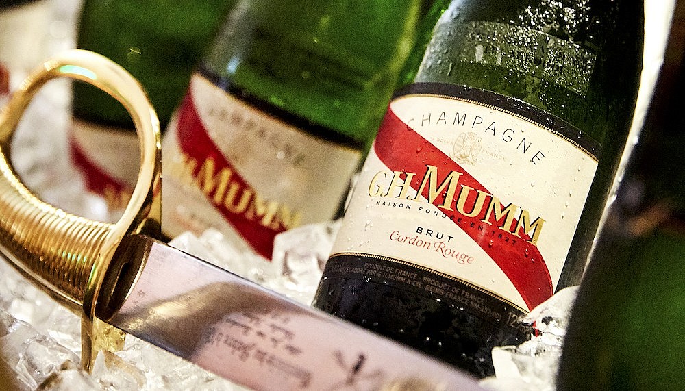 Men in emerald robes march slowly into the room, sabres in hand. Curious onlookers gather, camera phones ready. The gold ornaments that hang over their necks catch the light, complementing the trims of their robes. A green magnum of champagne is presented and lo and behold, its neck is swiftly beheaded with a sword. The cork pops and out flows the bubbles of victory.