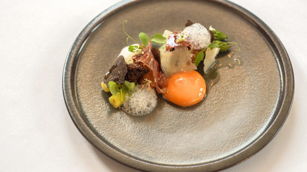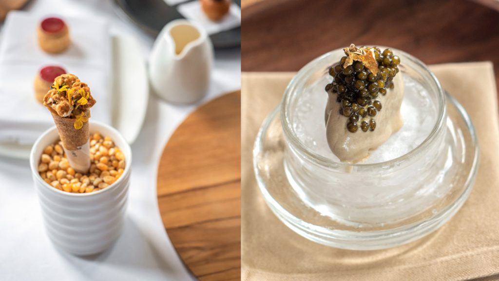 “With this lineup of local ingredients in the menu, first-time visitors will be able to experience and marvel at what Malaysia has to offer on so many fronts – to go a bit deeper,” Horiuchi explained. After a swift palate cleanser of mildly bitter Japanese gobo ice cream crafted from burdock root, enhanced with the saltiness of caviar pearls, Masashi Horiuchi presented a dish of green asparagus grown in the Highlands with roasted sweetbreads made from calves’ throat glands. An example of his nose-to-tail cooking philosophy, the creamy sweetbreads were complemented by earthy morel mushrooms, black truffle slices and the intense minerality of a 2018 Domaine Séguinot-Bordet Chablis.