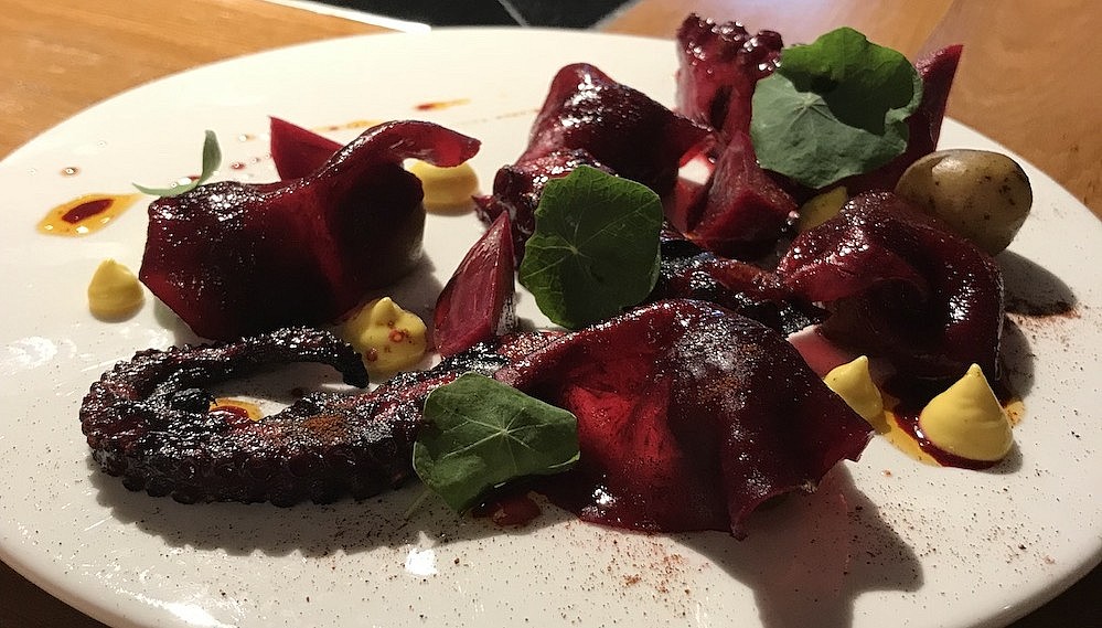 In a warm inviting space built around an open kitchen, flanked by a kinetic mural of Hollywood stars in a food fight, the dishes arrive quick to the table. The octopus with pickled beetroot and saffron aioli is a highlight, as is the duck breast with salted duck egg crumble. Pan-seared snapper a la Tippling Club is a sneaky re-creation of the Singaporean restaurant’s favourite, while the mushroom salad covering a poached egg is a sophisticated punch of umami. In the dessert section, between the requisite carrot cake and chocolate mousse is Chef Ng’s Asian contribution to a European-skewed menu – a faux avocado made of avocado and pandan ice cream, over a layer of creamy glutinous rice infused with coconut cream. Kerisik – toasted grated coconut – forms the “avocado’s” crust, a lovely and familiar way to end a culinary journey to Europe.