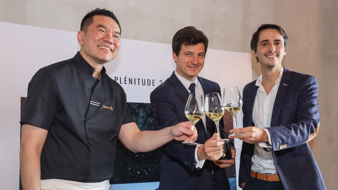 Serving canapés made a la minute such as sturgeon carpaccio, chayote spaghetti with sturgeon collagen, and salted caramel chocolate bon-bons with Amur caviar, he praised the champagne’s freshness and lingering finish. “It’s full of youthfulness but has an age of 17 years old: this is the real meaning of what Plénitude 2 represents. There is a Plénitude 3, in fact, which is a much older vintage – but perhaps we can talk about at the next launch, if the Maison is feeling generous!”
