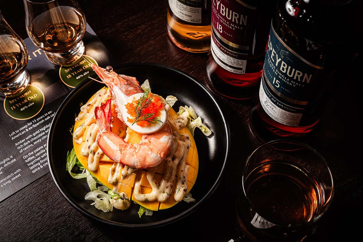 Guests then savoured dishes that included Prawns and Mango Cocktail, succulent white prawns nestled on a bed of sun-ripened mango, finished with a fragrant house-made mango chutney dill sauce. The citrus and apple notes from the Speyburn 10-Year-Old, a gold medal winner at the 2025 San Francisco World Spirits Competition, accentuated the mango’s sweetness, while its toffee warmth and long finish complemented the delicate richness of the prawns.