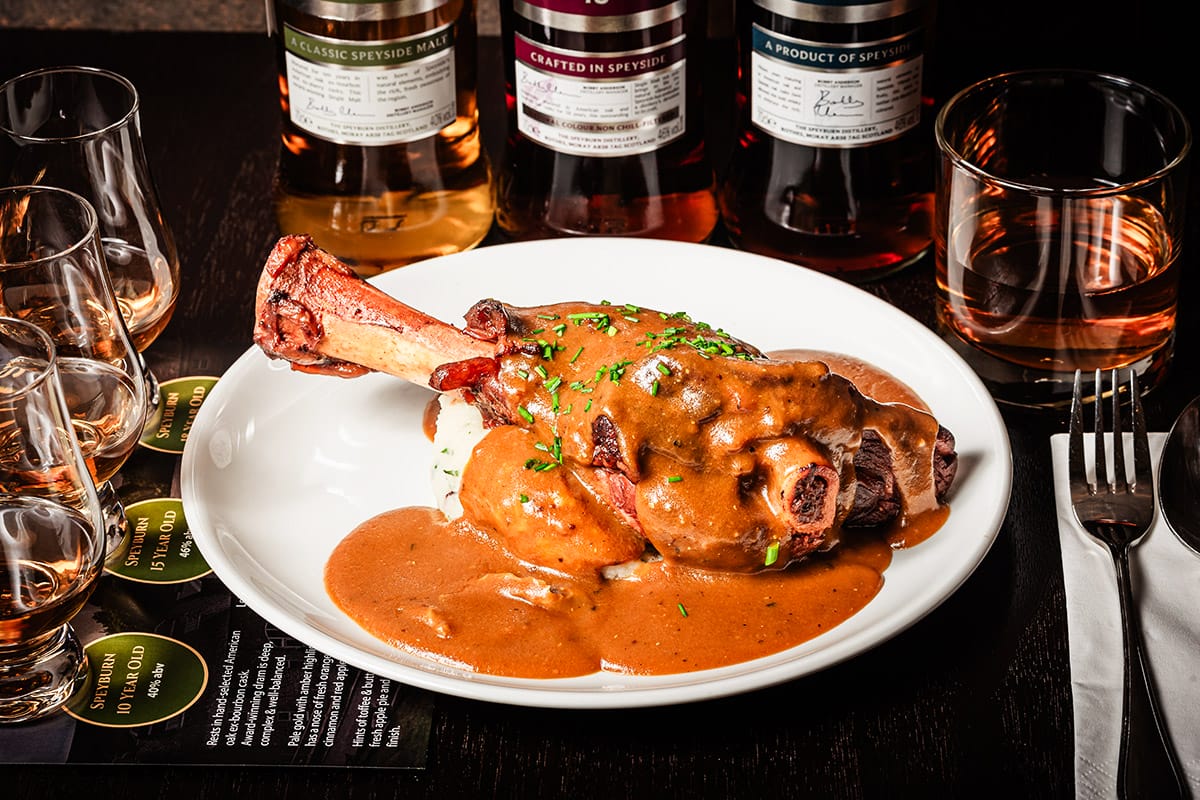 The next delight was a tender lamb shank, slow-braised for six hours and served with a velvety cream sauce enriched with Guinness and Speyburn 10-Year-Old whisky. This was accompanied by a Speyburn 18-Year-Old, whose rich layers of dark chocolate, dried fruit, and warm spice echoed the dish’s hearty depth, while cutting through its creaminess with a lingering finish.