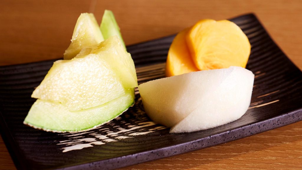 In an ode to the season, abalone is gently stewed with Japanese turnip, pumpkin, sweet yam, and maple leaf-shaped kazarigiri decorations. Chef Yong is a dab hand with the grill too, presenting an adeptly seared platter of Wagyu tenderloin, King Crab, and a Hokkaido scallop, and finally making short work of slicing the best Japanese fruits available, be they musk melons or white strawberries.