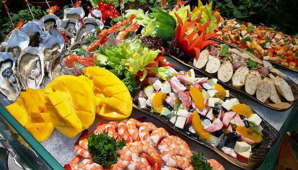 Ensconced in a little corner surrounded by elaborate Christmas decorations, the space may be small but the menu packs a punch. For starters, there is a full salad bar with condiments and dressings, with crisp shrimps with mango in a classic prawn cocktail and juicy fresh oysters. Then there is a vast array of mains, which includes (deep breath) three types of sausages, corn-on-the-cob, grilled beef ribeye tip, seabass teriyaki, marinated lamb cutlet, grilled prawns with spiced butter, baked potatoes, grilled vegetables in olive oil, spring chicken and marinated BBQ pork ribs. Taking pride of place on Christmas will be a roast turkey with cranberry sauce, while for New Year’s Eve, this is replaced with ribs with shallot gravy. All that food may leave you stuffed, but save space for dessert, which consists of fresh berries, ice cream, three-coloured chocolate mousse, coconut crème brûlée, fruit jellies and scrumptious festive cookies.