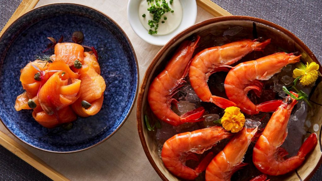 His advice is well founded because oyster-loving gourmets will find it hard to move beyond the initial offerings. Fresh plump Irish Gallagher oysters, served with tabasco, vinaigrette, Thousand Island dressing and lemon provide a sweet and umami-rich start to the meal. Next comes the poached Tiger Prawns, a delicate profile of sea and shell, as well as the house-smoked Norwegian salmon.