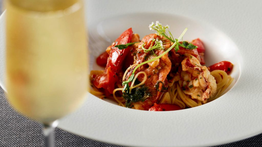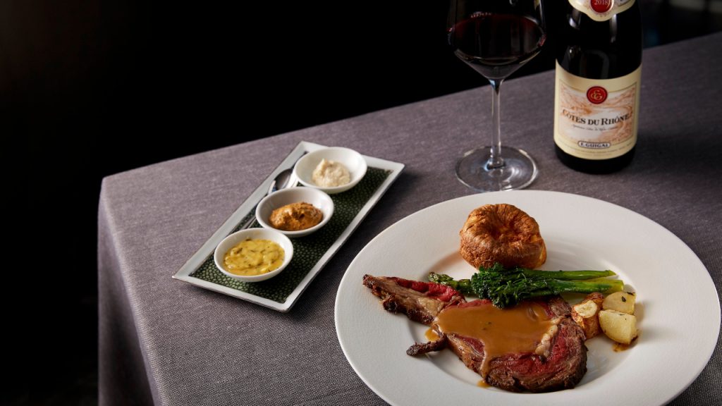 However, you’d be missing half the fun if you don’t get into the mains, as the Nova Scotia lobster on the capellini provides another dimension to the meal, with tender hunks of lobster on moreish tomato and herb-accented pasta. The pan-seared Hokkaido scallops with a capers raisin emulsion is a great foil for the champagne, with its buttery and sea salt balanced by the drink’s crisp elegance. Likewise the Cod a la Grenobloise and its lemon butter accompaniment, which teases out the power of the champagne, letting the food settle nicely before the signature roast arrives.