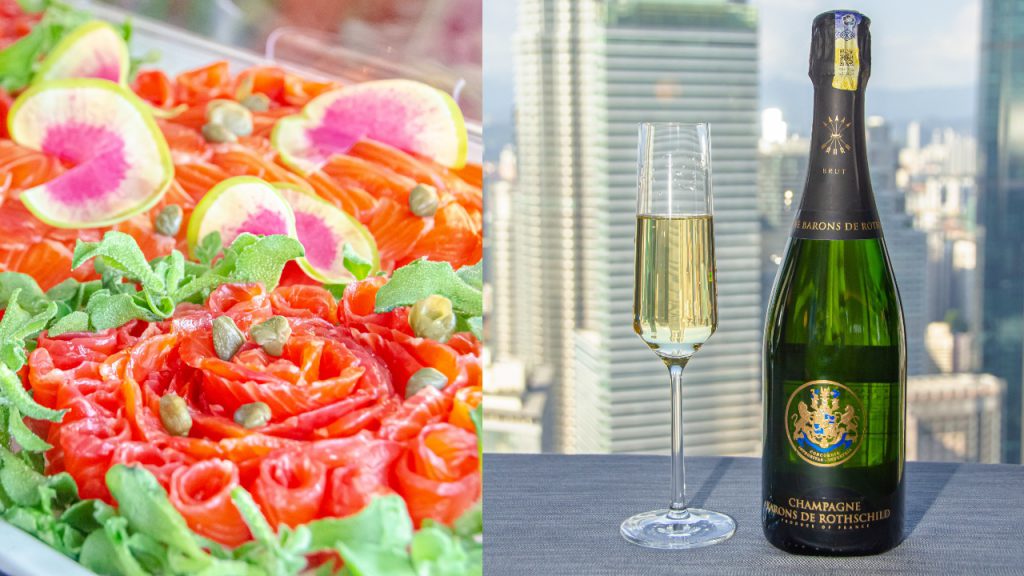 The Rothschild Sunday Roast (which is priced between RM228 to RM350 per adult, depending on guests’ beverage selections) takes its name from the brunch’s star attraction: free-flowing Barons de Rothschild Brut champagne. Produced from a unified collaboration between all three branches of the illustrious Rothschild family, this lively, pale gold champagne is a beautifully balanced blend of three- to four-year old Chardonnays and Pinots Noirs. Its fine bubbles and delicate aromas of white flowers and fresh hazelnuts pair wonderfully with the carved meats and assortment of cold and hot dishes on offer in Sabayon.