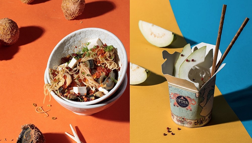 After a gin & tonic (unusual in the addition of pink peppercorns and guava, imaginatively presented in a Chinese takeaway box), a pickle board kicks the dining portion off. Crunchy, piquant and inventive, it wakes the palette up. Particularly the white fungus flavoured with passionfruit. A fiery Thai fruit and vegetable salad reminds us that this is no watered-down cuisine, while the Everyday Yee Sang (with seaweed and mackerel) ensures prosperity every evening. Mr Chew’s interpretation of various street foods are probably the most successful things on the menu. The Nori Taco is a beautiful amalgamation of salmon sushi and Mexican tacos, while the deep-fried catfish buns are worth second, third and fourth orders – the fish is roasted char siew style, and the som tam is tartly crunchy.