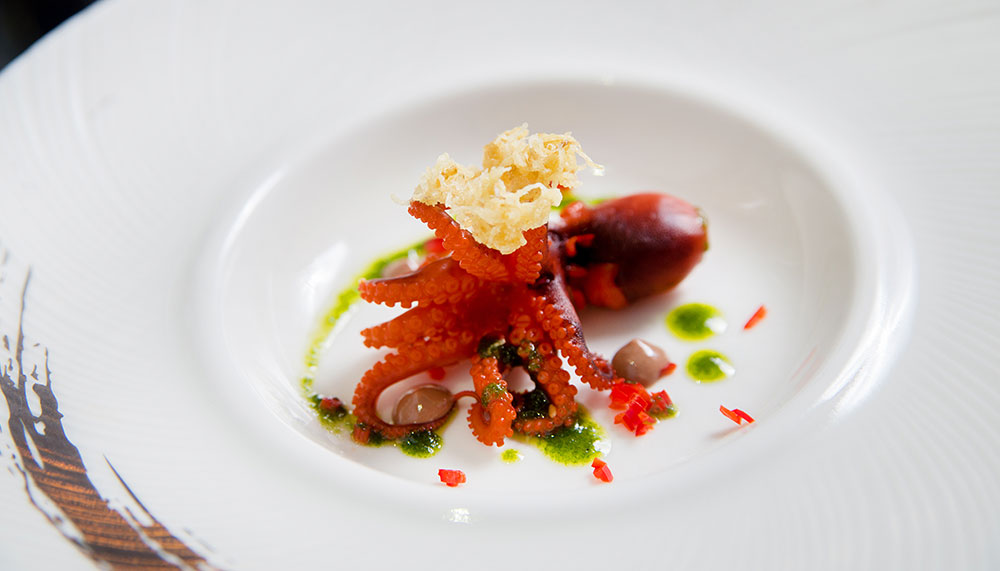 Guest chef Carlos Pardo Figueroa from Lima, Peru presented a four-course menu featuring classic Peruvian dishes given the gourmet treatment, along with fruity cocktails made with premium pisco from Demonio de los Andes, South America’s oldest vineyard. The amuse-bouche of baby octopus dressed with a creamy, savoury olive sauce was followed by an appetiser trio of earthy, punchy quinoa tabbouleh with avocado mousse and crispy fried cheese, a Maki-shaped potato roll with avocado and cucumber topped with raw tuna and piquant acevichado sauce, and flounder ceviche, Peru’s most well-known national dish.