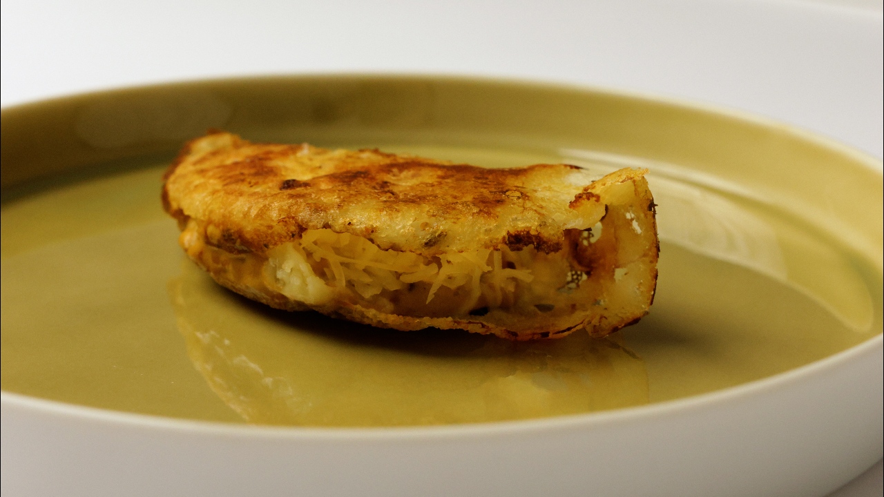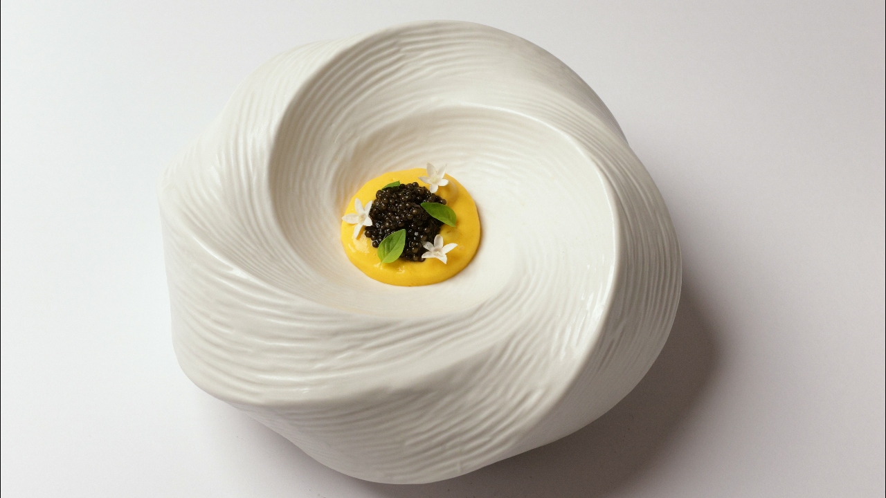 Parivartan, or ‘evolution’, winds around time and place. After an opening duo of jalebi—the namesake dessert between a biscuit base and a lick of wasabi for a curious blend of sweet, savoury, and swift heat—and rice crackers accented with fenugreek and curry leaves is a dosa. Flour’s creative interpretation features a shitake mushroom paste and gruyere cheese filling, elevating the humble staple into a refined treat that is likely to inspire new trends.