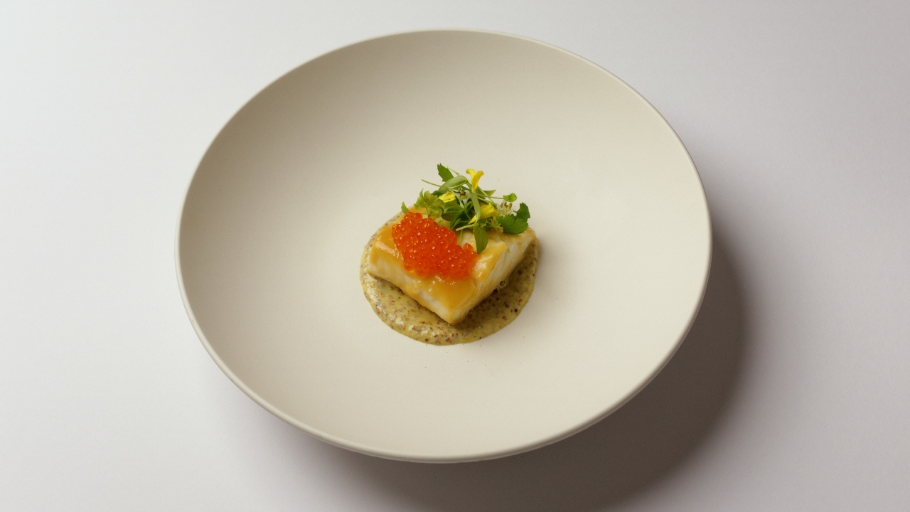 From the Rajasthan drylands where beans and berries birthed the ker sangri, Chef Yogi reinterpreted the traditionally hot dish as an uplifting cold salad of organic French beans, asparagus, raspberry sauce, homemade curd, tamarind, cherry tomatoes, and Greek cheese. He transports you to Bengal in the east with the macher jhol (fish curry), reimagined as Alaskan white cod marinated with miso and served with smoked trout roe, mustard and yoghurt, then to the west with the Gujarati daal dhokli, a beautiful pigeon pea stew that’s piquant with mustard and bulked with tomatoes and soba noodles.