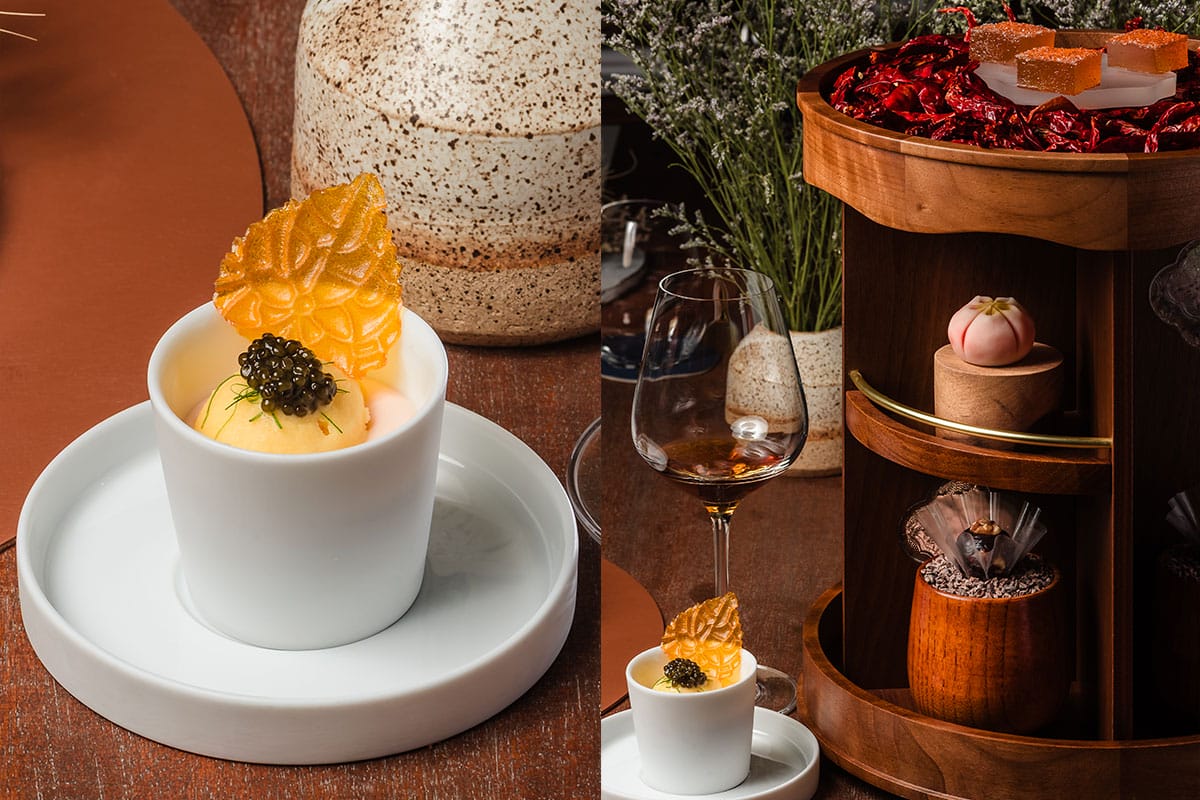 As part of the principal courses, Lo presented the Night Jasmine (Ye Lai Xiang, also an iconic Mandarin song by the late Taiwanese singer Teresa Teng). “Night Jasmine isn’t just a familiar song or a flower. In the memory of Taiwanese people, it’s also the fragrance that drifts through the streets at night from noodle shops waiting for people coming off work,” Lo said. “The main inspiration for this dish comes from my late-night, go-to spot after work, a beef noodle shop. We’ve combined spiced wagyu fat, century egg, and crackers to reinterpret the classic Taiwanese late-night combo: braised beef noodles with chilled century egg.” The noodles were interpreted into a crispy cracker whose crunchiness paired perfectly with the tingling spice of Szechuan peppers, the creamy depth of the chilled century egg yolk, and the umami notes of the tartare.