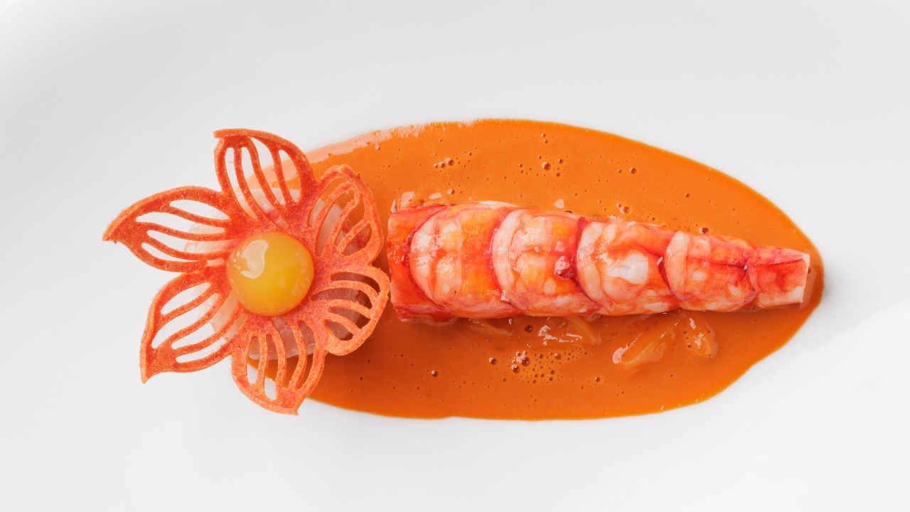 The next dish featured Canadian lobster. Originating from the cold, pristine waters of the Atlantic Ocean, Canadian lobsters are a highly sought-after delicacy renowned for its sweet, distinct taste developed from its cold-water habitat. Bathed in orange sauce with delicate potato noodles, the citrusy zest added vibrancy to the delicate sweetness of the lobster, creating a perfect harmony that mirrored its dynamic presentation.